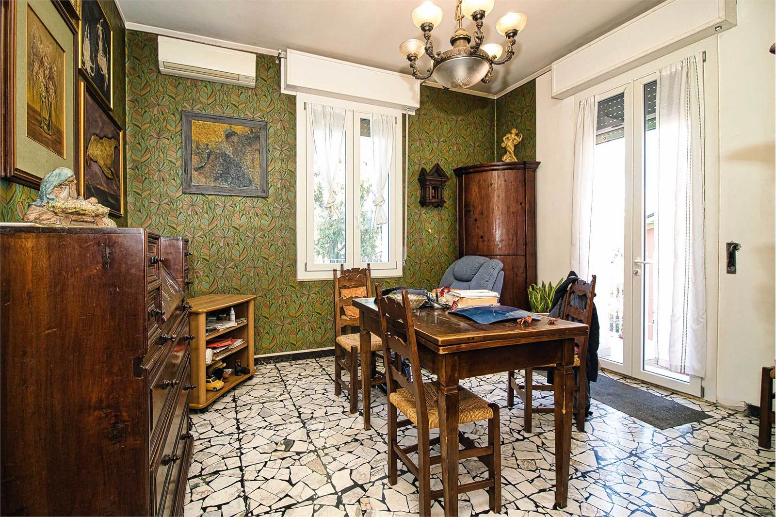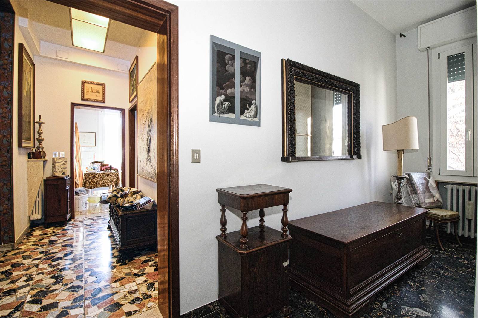 VR7416 Sant'Agnese, in bellissima zona, tranquilla, vicina al centro, in palazzina di sole 3 unità abitative, circondata da ampio giardino vendesi signorile appartamento di ampie dimensioni, da ristrutturare, posto al 3° ed ultimo piano, con ascensore a norma. L'appartamento è composto da: ingresso, salone, tinello con balcone, cucina, studio con balcone, ingresso notte, 3 camere (una con balcone), 2 bagni. Cantina esclusiva e ampia soffitta condominiale con terrazza panoramica. Posto auto coperto e due spazi adibiti a parcheggio, all'interno del giardino. Nell'edificio oltre al cappotto esterno ed ai serramenti nuovi, è stato effettuato il consolidamento sismico, il rifacimento e l'isolamento del tetto e sono stati installati i pannelli fotovoltaici.