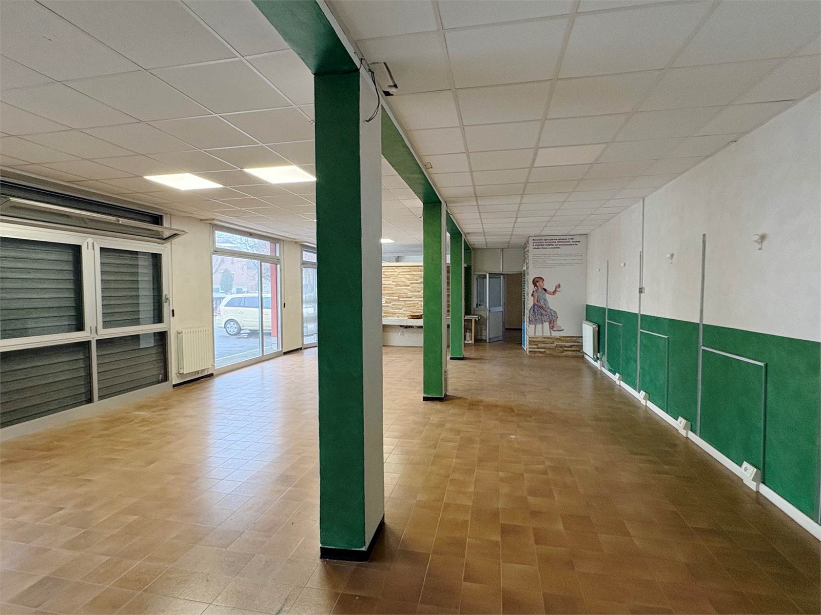 VR7442 Libero negozio/ufficio di 170 mq con 6 vetrine (serrande motorizzate) con possibilità parcheggio, ideale per centro estetico, poliambulatorio, parrucchiere. Attualmente sono presenti 2 vani uffici di 15 mq ognuno, doppi servizi con antibagno e i restanti 120 mq sono openspace . Classe VA