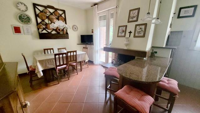 - PIANO TERRA: giardino su due lati (fronte a retro), ingresso su ampio soggiorno, cucina abitabile con camino e forno a legna, due bagni, ampia lavanderia, cantina e garage;
