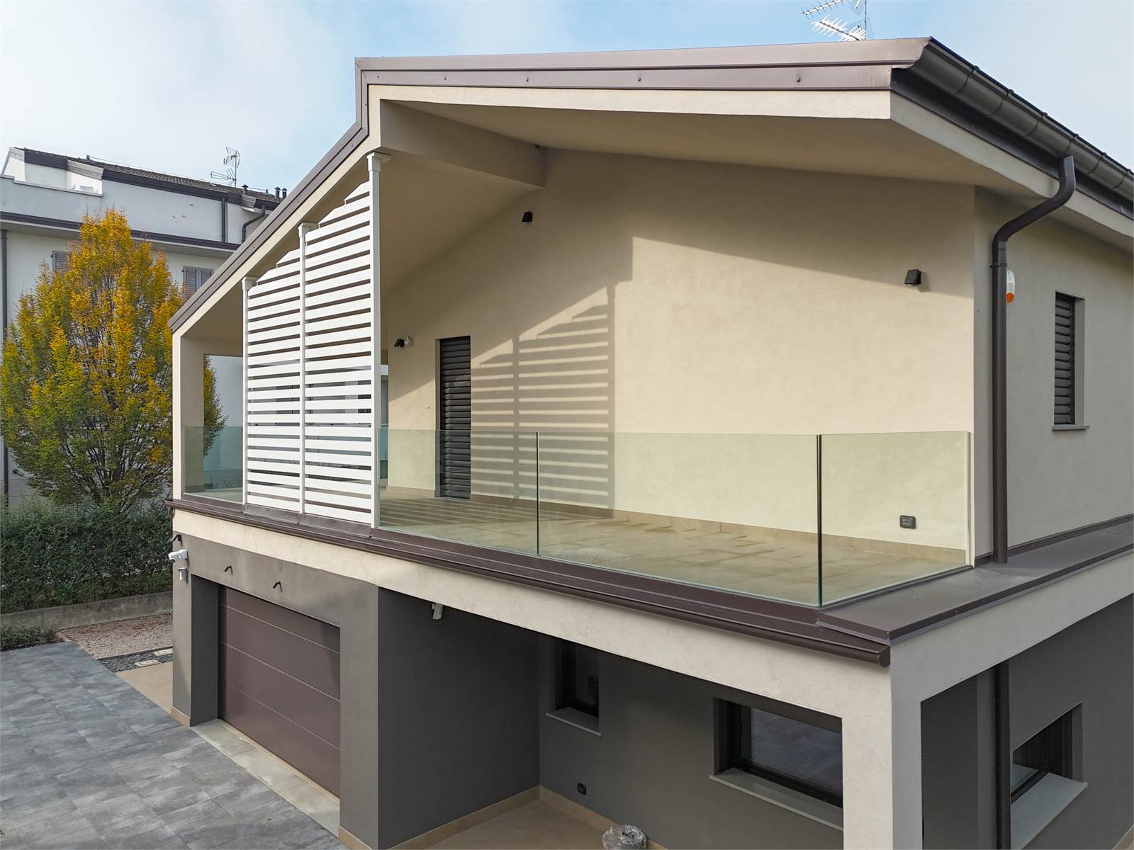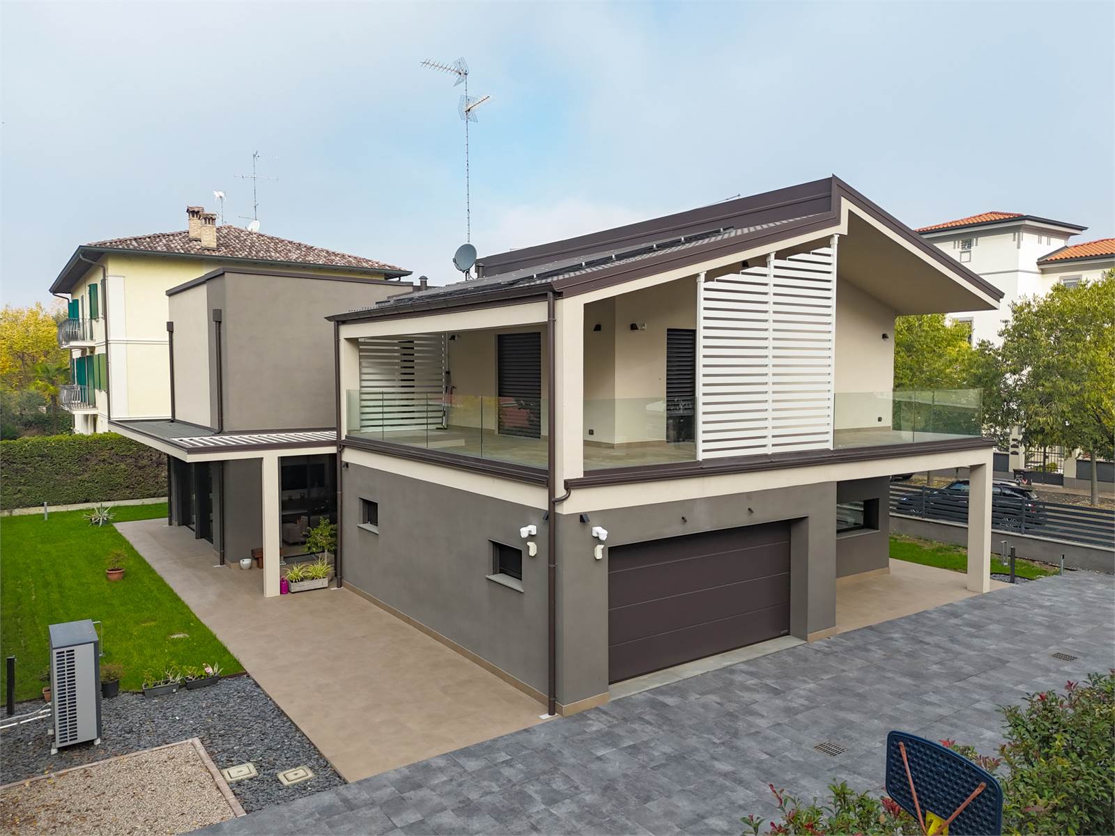 VR7406 Esclusiva villa indipendente del 2023 in classe A : l'abitazione è sviluppata su 2 soli livelli con a piano terra garage, servizi e adiacente zona giorno completa di studio con affaccio sul giardino privato e reparto notte al primo piano . L'elegante piano terra dispone di ingresso su spazioso e luminoso soggiorno con cucina a vista e doppio volume, studio, bagno, vano tecnico e garage di 40 mq; al primo piano , accessibile da elegante scala a vista, si trova il reparto notte con camera padronale con cabina armadi , bagno privato e terrazzo, ulteriori 2 camere e bagno completano il reparto notte. La villa , realizzata in base agli ultimi standard in materia di risparmio energetico, è dotata di impianti domotici, condizionamento, impianto antintrusione , impianto illuminazione e irrigazione esterne e fotovoltaico con batterie accumulo. INFO C/O NS UFFICI PREVIO APPUNTAMENTO.